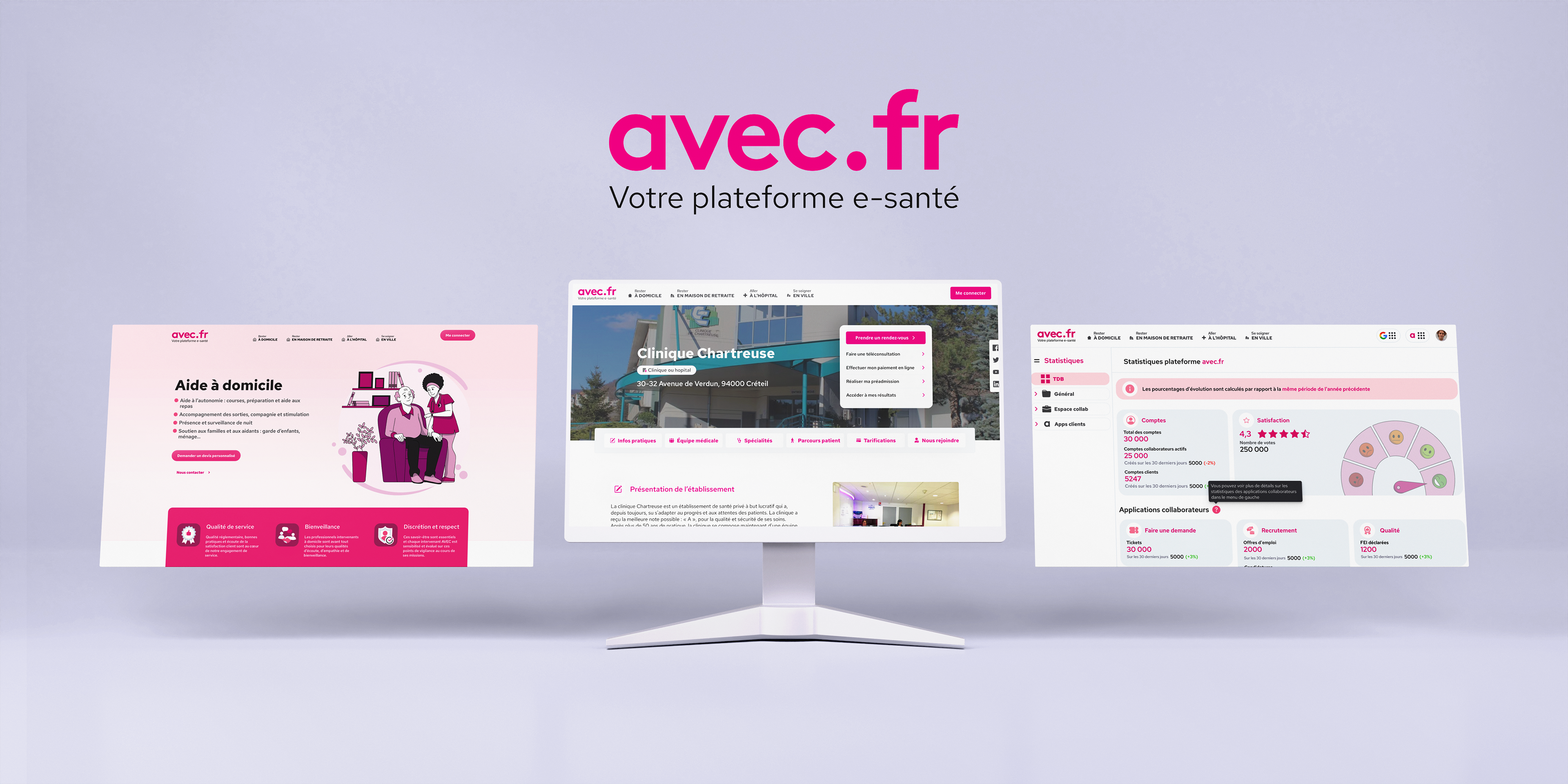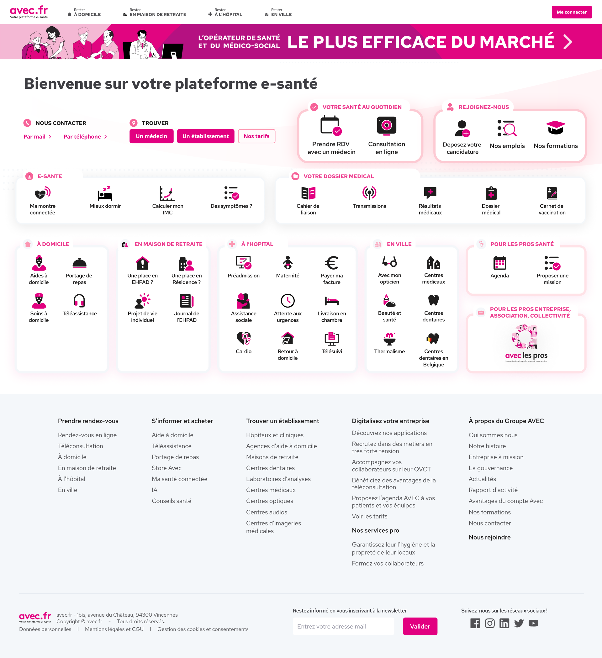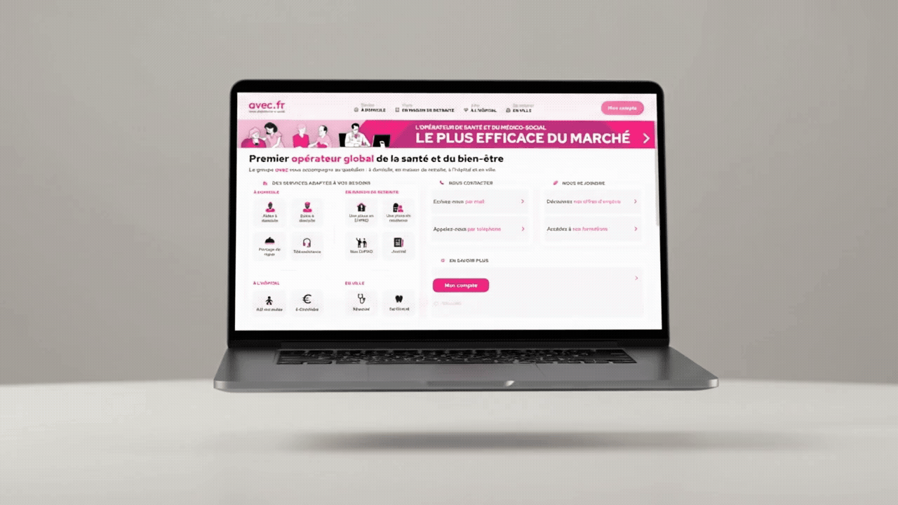 Avec.fr est le plateforme e-santé du groupe avec (premier opérateur global de santé en france). créée en 2021 la plateforme présente un ensemble de plus de 20 applications pour clients et plus de 60 applications pour les collaborateurs interne au groupe.